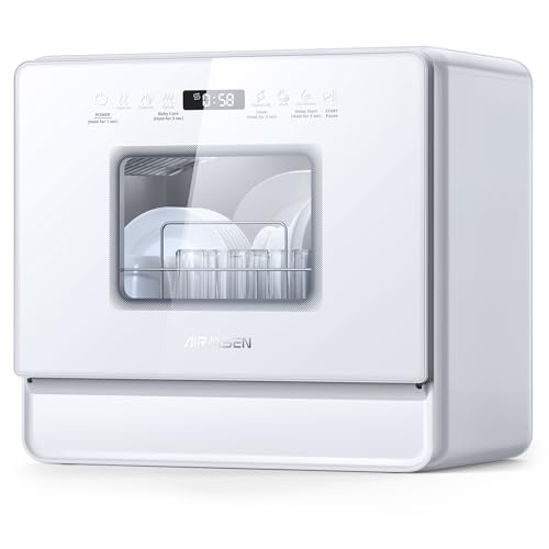AIRMSEN Countertop Dishwasher – 8 Wash Programs and 3 Useful Function, Integrated Water Softener, Delayed Start, Child Lock, No Hookup Needed, Portable Mini Size for Home, Apartments & RVs
