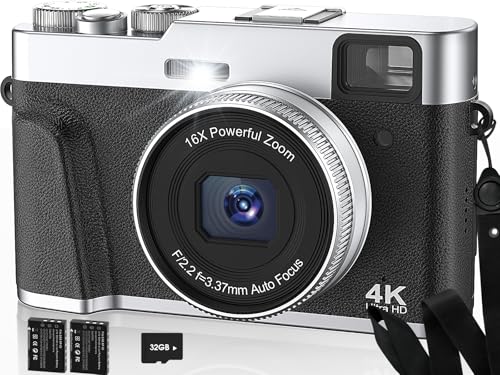 4K Digital Camera for Photography, 48MP Autofocus Vlogging Cameras with 16X Digital Zoom, 2.8″ LCD Point and Shoot Camera for YouTube, Anti-Shake Compact Cameras with 32GB Micro SD Card & 2 Batteries
