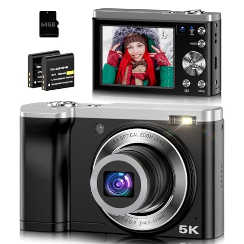 5K Digital Camera 10X Optical Zoom, 56MP Cameras for Photography with Front and Rear Dual Cameras, Vlogging Camera for Photography Travel Camera with 2.8″ IPS Touchscreen, 64G Micro Card & 2 Batteries