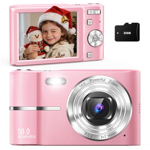 Digital Camera 4K for Kids: 50MP Pink Camera for Photography -16X Zoom Anti-Shake, Date Stamp- Christmas Birthday Gifts for Girls- Compact Camera for 6 7 8 9 10 Year & Up Old Boy Girls
