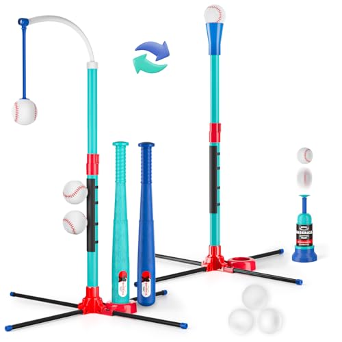 3-in-1 T Ball Set for Kids: Hanging Batting Tee + T Ball Stand Set Auto BaseBall Launcher for Toddlers & Youth Adjustable Height with 2 Bats 6 balls Outdoor&Indoor Toys Sports Gifts for 3-12 years old