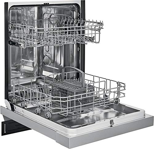This ADA compliant 24 Full Console Dishwasher by Frigidaire has up to 12 place settings with 6 wash cycles The dishwasher features a heated drying system a 24-hour delay start and cycle status indicators