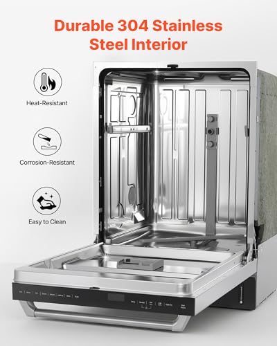 Powerful Cleaning & Drying: This 24 inch built in dishwasher features dual spray arms that cover every angle for deep cleaning. The built-in auto open-dry function pops the door open after washing to speed up evaporation and minimize water spots