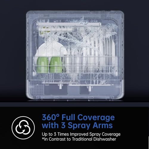 High-Temperature Cleaning: The mini dishwasher includes a Hygiene Cycle that heats water to 167°F, sanitizing dishes (even baby bottles) and removing tough stains. It also provides 60 minutes of hot-air drying and 72-hour automatic ventilation to keep dishes and the interior dry and fresh long-term.