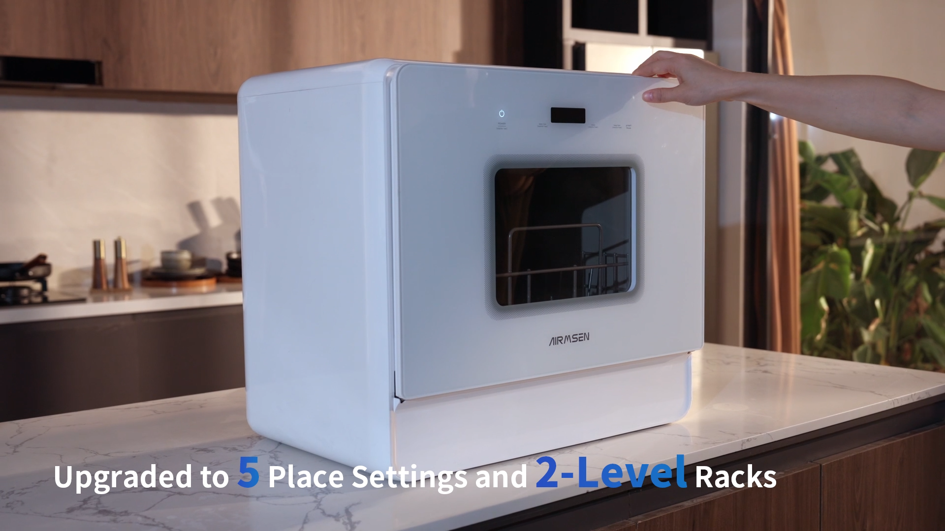 Sleek Design & High Capacity: A01 countertop dishwasher features a slim profile, saving valuable countertop space. Ideal for small kitchens and families (5-6 people), it can accommodate plates up to 11.8 inches in diameter when the upper basket is removed.