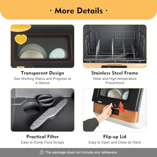 THREE IN ONE WASHING MODES: The mini dishwasher utilizes hot plate heating technology and has three intelligent washing modes: quick wash, standard wash and power wash. These three modes can be selected according to the number of different dishes and the degree of soiling, providing you with a more personalized cleaning service