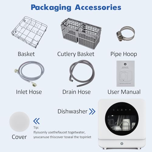 NO INSTALLATION REQUIRED: The portable dishwasher includes a convenient bucket, allowing you to place it anywhere you like. Additionally, it can be directly connected to the kitchen faucet using the included water inlet for easy setup.