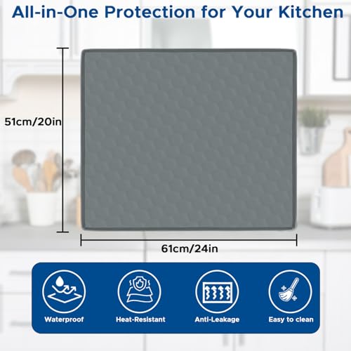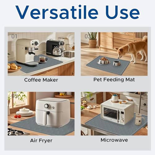 Versatile Stylish Solution:Beyond its primary function of protecting your floors, this mat is incredibly versatile,use it under various household appliances like coffee maker,air fryer, oven, toaster, microwave, ice maker, mini fridge, or repurpose it as a pet feeding mat, plant tray, Its stylish design adds a touch of elegance to any room, making it a perfect gift for family and friends on special occasions.