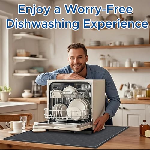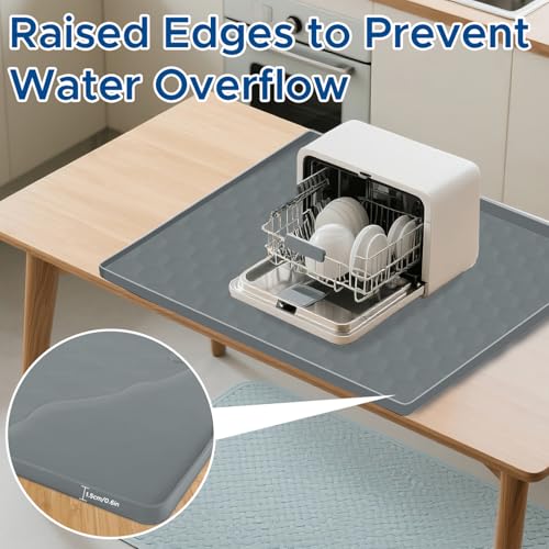 Warm reminder: Our silicone dishwasher drain pan mat measures(24″ x20″),the ideal size for most countertop dishwashers, portable dishwasher mat features high edges all around, effectively holding water and preventing leaks or overflows,protecting your floors from stains and damage,by keeping your kitchen area neat and tidy, this mat eliminates the hassle of cleaning up spills and provides a worry-free dishwashing experience.