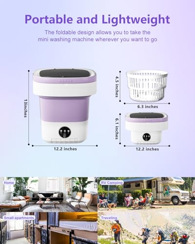 【Portable Washing Machine】Portable washer with spin basket and Foldable Design, The body weighs only 3.5 lbs, compact and easy to carry, ideal for your camping, travel, apartment, dorm and hotel. Our portable washing machine is made of TPE and food-grade silicone material, protecting the health of you and your family! This small washer machine features a space-saving foldable design, ideal for washing underwear, delicates, or light loads.