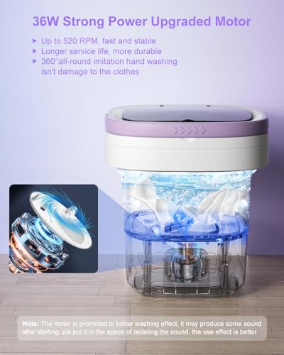【16L Upgrade Design】16L Large Capacity portable washing machine has a super large capacity, more than traditional 6L washing machines can handle more clothes at one time, more efficient. Large body, large capacity. The upgraded 36W strong motor has a bigger power(The motor is promoted to better washing effect, it may produce some sound after starting, put it in the space of isolating the sound to better using), 360°aIl-round imitation hand washing isn’t damage to the clothes,more thorough cleaning