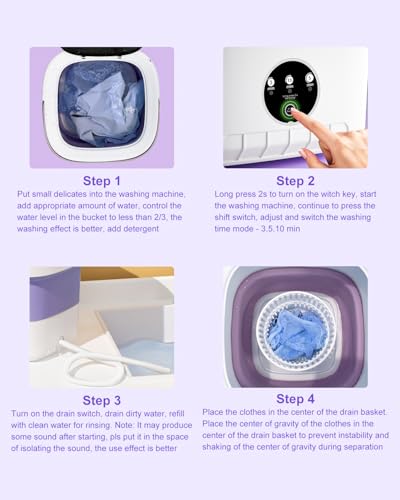 【Easy to Operate】This mini washing machine offers a full range of hand-scrubbing imitation wash with 3-minute, 5-minute, and 10-minute timer buttons, and precise wash speeds for powerful stain removal, making it easy to complete a wide range of cleaning requirements.(PS. Fill the washing machine with 2/3 of water to achieve better washing effect).