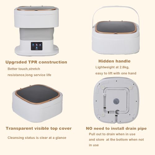 【Foldable & Space-Saving Design】 This mini washer features a smart folding structure that saves space in your home. When unfolded, it measures 12 x 12 x 13 inches; when folded, just 12 x 12 x 6.5 inches. Store it easily under the bed, inside closets, or in a cabinet. Its small washer design makes it perfect for compact living spaces, offering both convenience and performance in one.