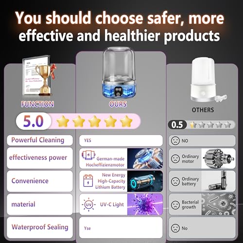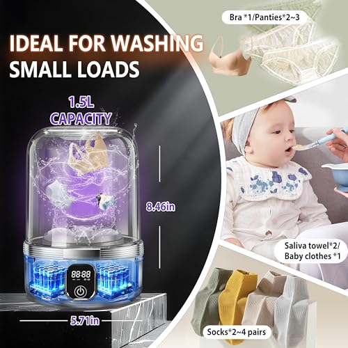 ✅【5.0 Upgraded Underwear Washer】This mini washing machine is exclusively equipped with two high-capacity batteries of up to 7000mAh. It also features an LED digital touchscreen, which enables intuitive operation—allowing you to clearly see the remaining battery power and selected mode at a glance. You can check the washing status anytime, anywhere