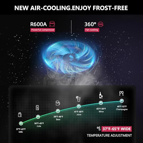 QUIET COOLING SYSTEM – Our powerful cooling system cools beverages down to 37°F (temperature range: 37-65°F). This refrigerator stainless steel refrigerator features an upgraded compressor that effectively provides fast, powerful cooling and constant humidity, and the in-cabinet air cooling system provides more even cooling to keep your beverages at their best. And it under counter refrigerator runs with low vibration and low noise, making your home more comfortable.
