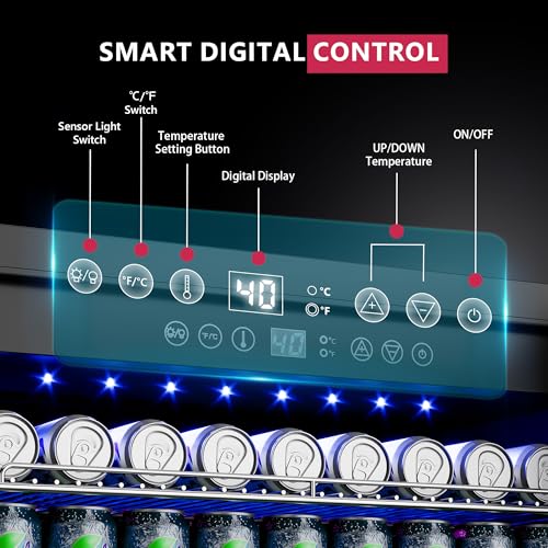 MORE FEATURES & DESIGN – The beer fridge refrigerator’s smart temperature memory feature restores the set temperature after a sudden power outage, preventing your drinks from spoiling. The beverage case is equipped with soft LED lights to help illuminate your drinks in the dark. The bottom feet of the refrigerator outdoor fridge adjust the level and height of the beverage refrigerator refrigerator, allowing it to fit perfectly into a 24-inch space.