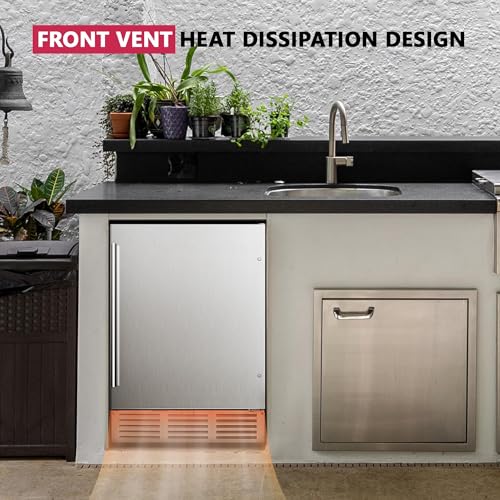 UNDERCOUNTER DESIGN – The refrigerator undercounter refrigerators is made of 304 stainless steel, which makes the outdoor refrigerator for patio refrigerator resistant to corrosion, rain, and rust. In addition, its front air outlet design makes it perfect for indoor or outdoor, under-counter built-in applications, enabling the cooling of beverages in outdoor kitchens, house parties, offices, and indoor kitchen counters