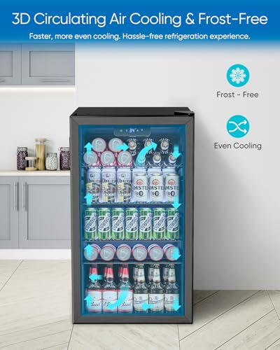 Optimal Storage Capacity – 3.2 Cu.Ft beverage cooler with 4 adjustable shelves can accommodate up to 126 cans or various wine bottles, allowing flexible storage either upright or horizontally. This drink fridge is perfect for keeping your favorite soda, beer, or wine chilled and neatly organized. Whether it’s for your kitchen, home bar, RV, dorm room, or garages, enjoy easy access to a variety of beverages always kept at the ideal temperature.