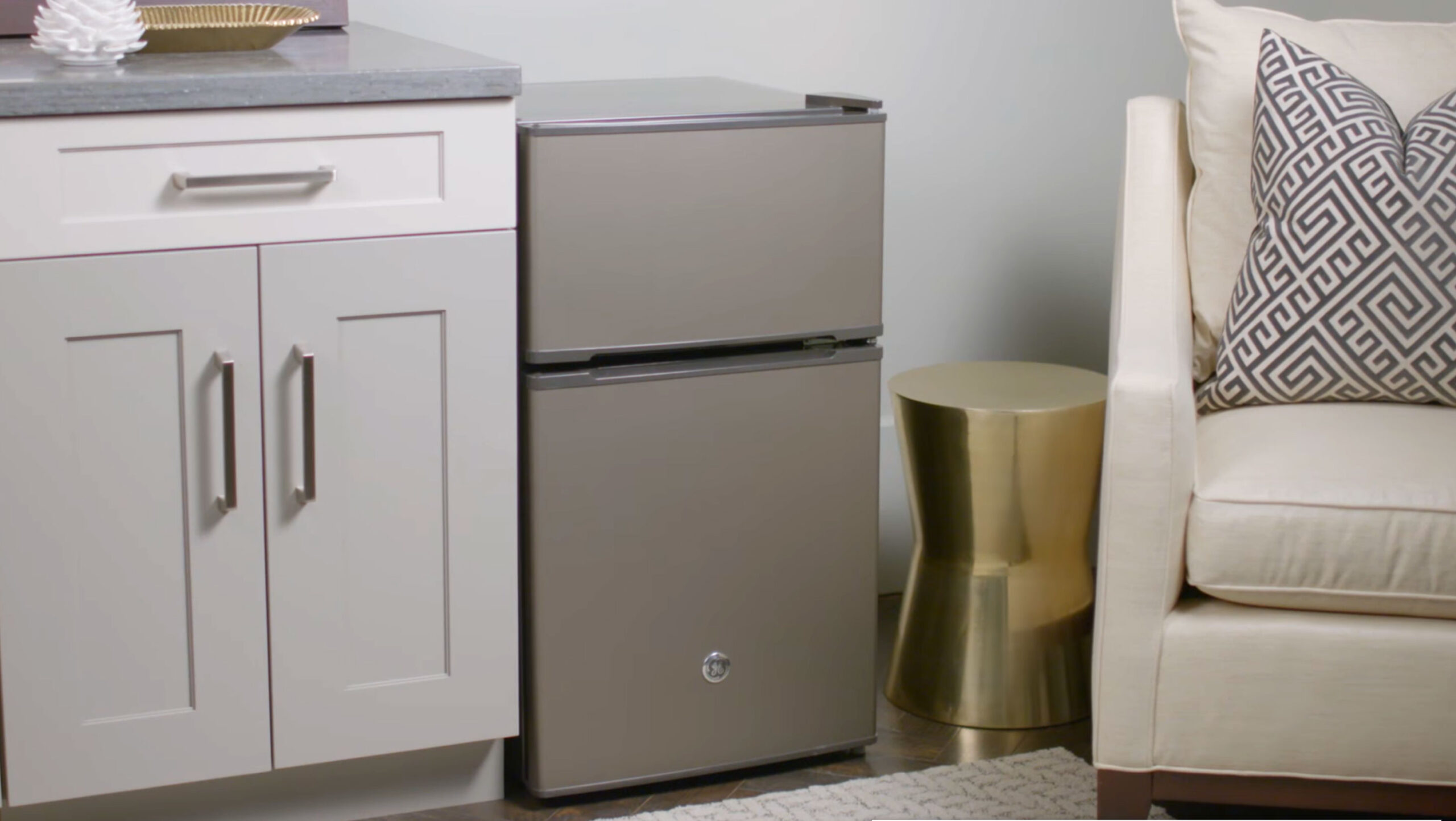 More than just a mini fridge, the 3.1 cu. ft. GE Double-Door Compact Refrigerator is the perfect complement to any dorm room, office, bedroom or apartment. This small-yet-roomy freestanding refrigerator has ample space for produce, snacks, and drinks. A separate, .93 cu. ft. freezer fits all your frozen goods. Mixing convenience, quality and durability, the ENERGY STAR compact refrigerator features special storage for tall bottles and drink cans along with easy-to-clean, sturdy glass shelves, a clear crisper for fruits and vegetables and a compressor tested for extreme conditions. With three color ways: black, white and CleanSteel stainless steel – and recessed handles to optimize space, the compact design fits into any d�cor.