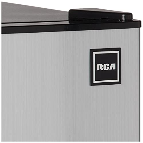 RCA brings decades of experience in producing high quality products. This two door Stainless Steel fridge is no different! Featuring a total 3.2 Cubic foot of cooling space your fridge conveniently has 2 separate doors. The top doors opens the freezer where you will find lots of space to store all your frozen food. The bottom door opens the fridge which features pull out glass shelves and a vegetable drawer compartment. On the side of the door you will find a beverage can dispenser as well as a compartment to hold 2 Liter bottles. The Stainless Steel finish is elegant and will add a richness to any room. This fridge is compressor cooled so it will keep your food and drinks cold no matter what the outside temperature is. There is a temperature dial built in so you can keep your fridge at the perfect desired temperature level. The fridge is very quiet and CFC free making it an environmentally friendly fridge. Ideal for a college dorm room, office, bed room or anywhere you need a high quality fridge with freezer space.