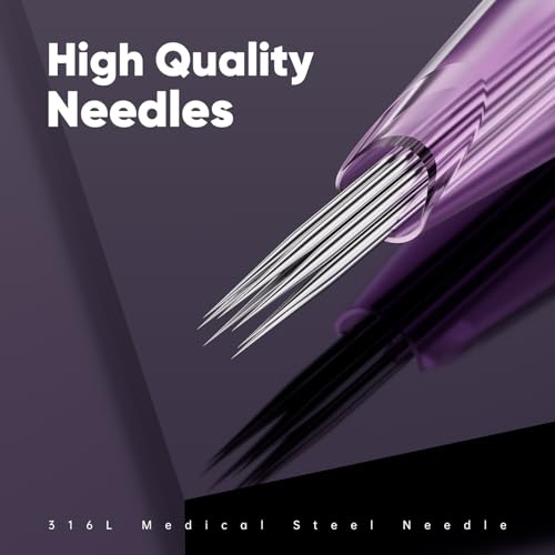 【Quality Assurance】: The needle is made of high-quality medical grade stainless steel to ensure durability and accuracy, providing smooth ink flow and stability during needle use, which helps maintain uniform lines and shadows. A sharp needle tip is crucial for cleaning lines and reducing skin injuries. The needle edge is specially designed to capture more ink, preventing ink or blood from leaking into the tattoo pen, and equipped with a stabilizer to prevent the needle tip from swinging. High quality tattoo needles assist you in creating high-quality tattoos