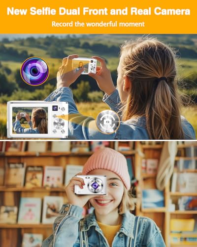 【Autofocus Function & Webcam】— The autofocus digital camera ensures your subjects are sharp and in focus, whether you’re capturing fast-moving action or delicate close-ups. Enjoy the ease and precision of automatic focusing. Dual lens 4K camera connect to PC and work as webcam to video calling & live streaming.