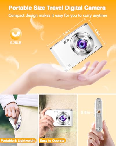 【4K Ultra HD Video & 48MP Digital Camera】— This 4k digital camera support 4K HD video recording; captures premium 48MP image resolution and record videos with pause function, allows you to pause while recording, you can just continue where you left off and convenience for you to edit your video. Latest CMOS technology capture precise detail, help you get exciting photos or videos, point and shoot cameras is ideal for beginners use.