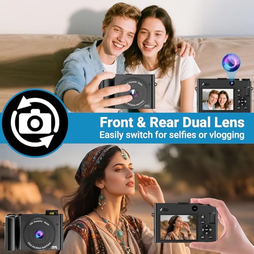 【4K Ultra HD Video & 64MP Photo】This latest digital camera captures true 4K videos and 64MP high-resolution photos, making it an excellent choice among cameras for photography and everyday content creation. It produces lifelike colors and detailed images, ideal for travel, family moments, and casual shooting. Whether you’re capturing outdoor scenery or recording creative vlogs, this small digital camera ensures your memories stay sharp and vivid.