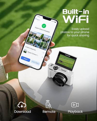 【Wireless WIFI & Webcam】This video camera comes with powerful WIFI connectivity, allowing you to instantly transfer photos and videos to your smartphone or tablet via a dedicated app. You can also connect the camera to your PC using a USB cable for quick file transfer. Additionally, digital cameras can function as a webcam, perfect for live streaming, video calls, and blogging. Whether you’re live streaming on YouTube or making high-quality video calls, it’s all possible with ease.