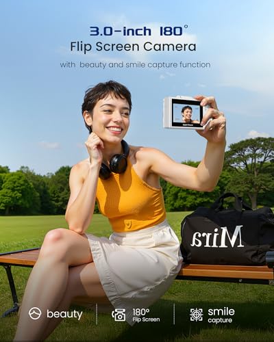【3.0-inch Flip Screen for Selfie Function】This vlogging camera features a 3.0-inch IPS 180° flip screen, allowing you to easily adjust shooting angle to capture your perfect shot, making it ideal for selfie lovers and video bloggers. Weighing just 232g, the vlog camera is lightweight and includes a standard tripod screw. With built-in anti-shake, continuous shooting, time-lapse, slow-motion and smile capture modes, it’s perfectly suited for travel and capturing every memorable moment.