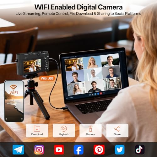 WIFI CONNECTIVITY + DIRECTOR MODE: Point and shoot digital cameras download picturesand live streaming with WiFi,no USB cable needed.Photography camera can stream live in high definition without delay to a phone or computer. The mobile app offers full remote control: real-time preview, parameter adjustment、shooting control and shared