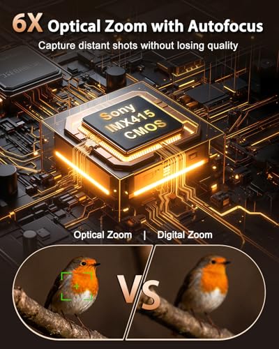 【6X Optical Zoom with Autofocus】 Featured with the powerful 6X optical zoom, the cameras for photography allow you to capture details at a distance without losing image quality, which is perfect for landscapes, sporting events or urban photography. Coupled with the fast autofocus and anti-shake image stabilization, this photography camera can quickly lock onto the subject, ensuring that your shots are sharp and in focus.
