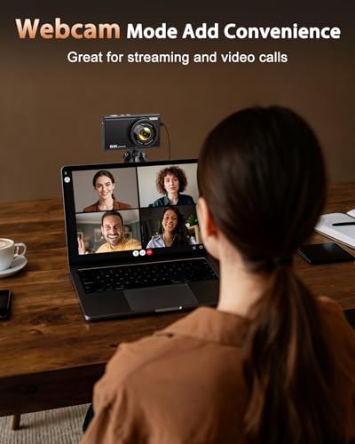 【Webcam & Multi-functional Vlogging Camera】This 5K vlogging camera for YouTube also doubles as a webcam—plug-and-play via USB, which is perfect for live streaming, video chats, and vlogging on YouTube, Facebook or Tiktok. Combine with the built-in flash, Exposure and ISO settings, this photo camera gives bright images even in low light. The versatile content creator camera offers time-lapse, anti-shake, slow motion, continuous shooting, self timer, beauty face, various filter effects, screen brightness and video recording pause function, providing versatility for various shooting scenarios.