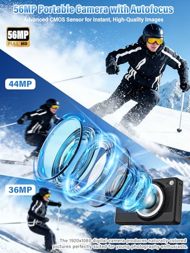 【1080P HD Digital Camera】This camera features the latest advanced CMOS chip, supporting 56MP photo resolution and FHD 1080P high definition video recording, along with a builtin fill light to help you capture high quality photos even in low light or dark environments, ensuring your precious moments are vividly preserved. This point and shoot digital camera is simple to set up, making it perfect for nurturing children’s interest in photography and an ideal choice for teenagers, kids, beginners, and hobbyists.