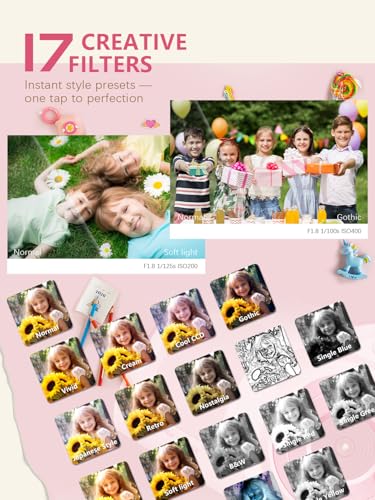 【8 Shooting Modes & 17 Filters】Includes professional modes such as portrait, landscape, and night scenes, combined with a diverse filter library to inspire creative inspiration; Supports USB connection to a computer as a webcam, suitable for live streaming or making video calls