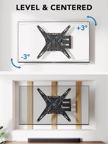 Unparalleled Viewing Experience: The full motion TV wall mount features 180° swivel and +5°/-15° tilt to position your TV exactly where you want it. The TV wall mount extends 18.7” to bring your TV closer for more comfortable viewing and retracts back to 2.3” to save space.