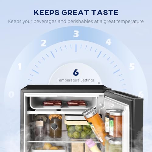 Precise Temperature Control: Equipped with six temperature settings, this mini fridge for office keeps beverages and perishables at a great temperature, ranging from 32 to 48.2°F in the cooler and 15.8 to 32°F in the freezer