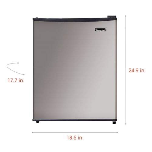The Magic Chef Energy Star 2.4 cu. ft. mini all-refrigerator has the fresh-food storage options you’re looking for whether you’re college-bound or simply want a little extra refrigerator space in your home or office. Offering plenty of additional space for storing your favorite beverages and refrigerated snacks, this unit has two removable wire shelves and generous in-door storage to keep you organized. Plus, the reversible door and flush-back design provides additional flexibility in placement.