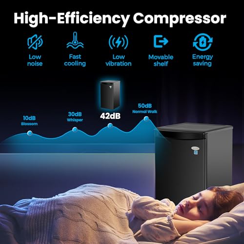 Space Saver – Its compact enough to fit in any small space in an Apartment, Dorm, Office, Hotel Room, Garage, Kitchen, School, Pantry by using reversible door option through which you can change opening direction towards right or left depending on your needs and room layout. Flat back design is value added feature means it doesnot have any exposed components which makes it easy to fit in any small area.