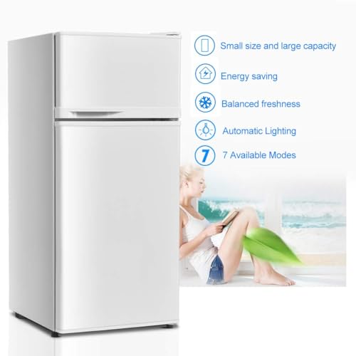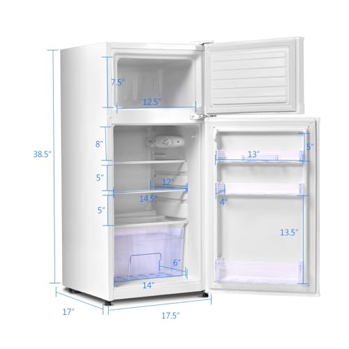 Size: 17″D x 17.5″W x 38.5″H, this mini fridge with freezer is perfect for any small space such as dorms, offices, apartments, dorms, garages, college dorms, families, etc.