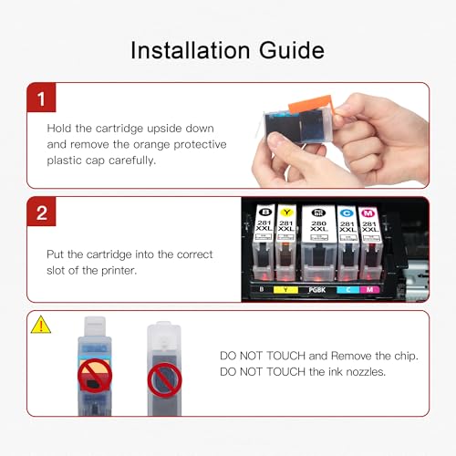 Excellent Performance: Compatible 280XXL 281XXL ink cartridge for canon 280 281 ink cartridges and canon tr8520 printer ink cartridges are committed to providing smooth, clean and sharp printing and vibrant color images deliver clear and vibrant printing effect.