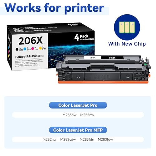 206X Toner Cartridge Set Compatible For: Color LaserJet Pro M255dw, M255nw; HP Color LaserJet Pro MFP M282nw, M283cdw, M283fdn, M283fdw