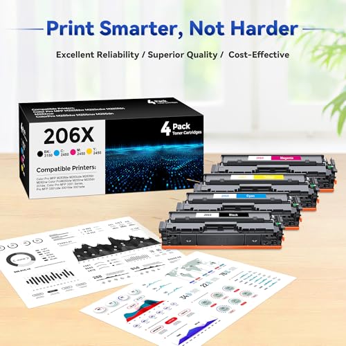 High Page Yield:Up to 3,150+ pages per black cartridge and 2,450+ pages per color cartridge (based on 5% coverage of A4 paper).Replacement for HP206X 206A 206X 206A high yield toner for MFP M282nw, M283cdw, M283fdn, M283fdw printers