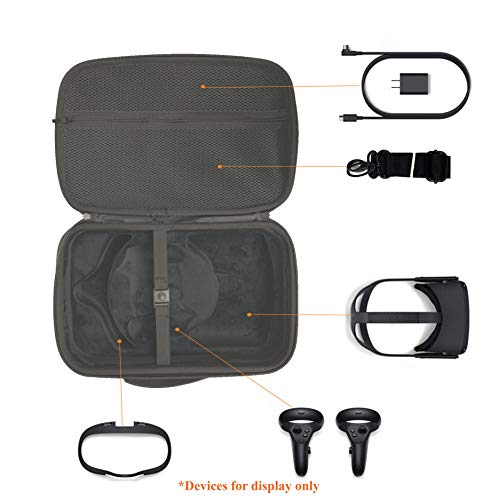 Classic designed case with handle that holds Oculus Quest headset, Touch controllers, charge cable, adapter and more.