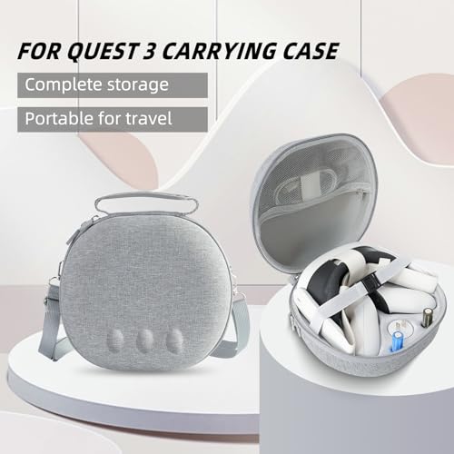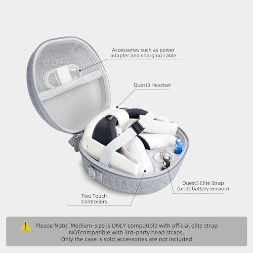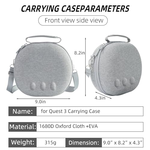 MINI & PORTABLE: Dimensions: 9.05×8.26×4.33 inches (23.00×22.00×11.00cm). We designed the mini case to fit the Quest 3, a headset and a standard strap so it can be transported better. Please note that it cannot hold hard headbands.