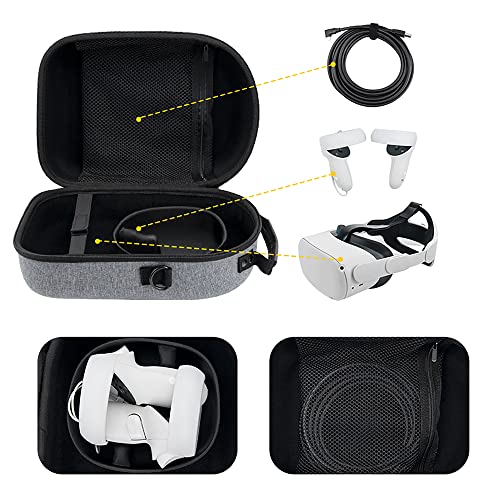 Great protection :Well made of EVA hard shell and water-resistant material,Strong and durable material to protect all the things inside against scratches, dust, impacts and accidental dropping. With an elastic fixing strap inside, carry case for oculus quest 2 stays secure when moving.